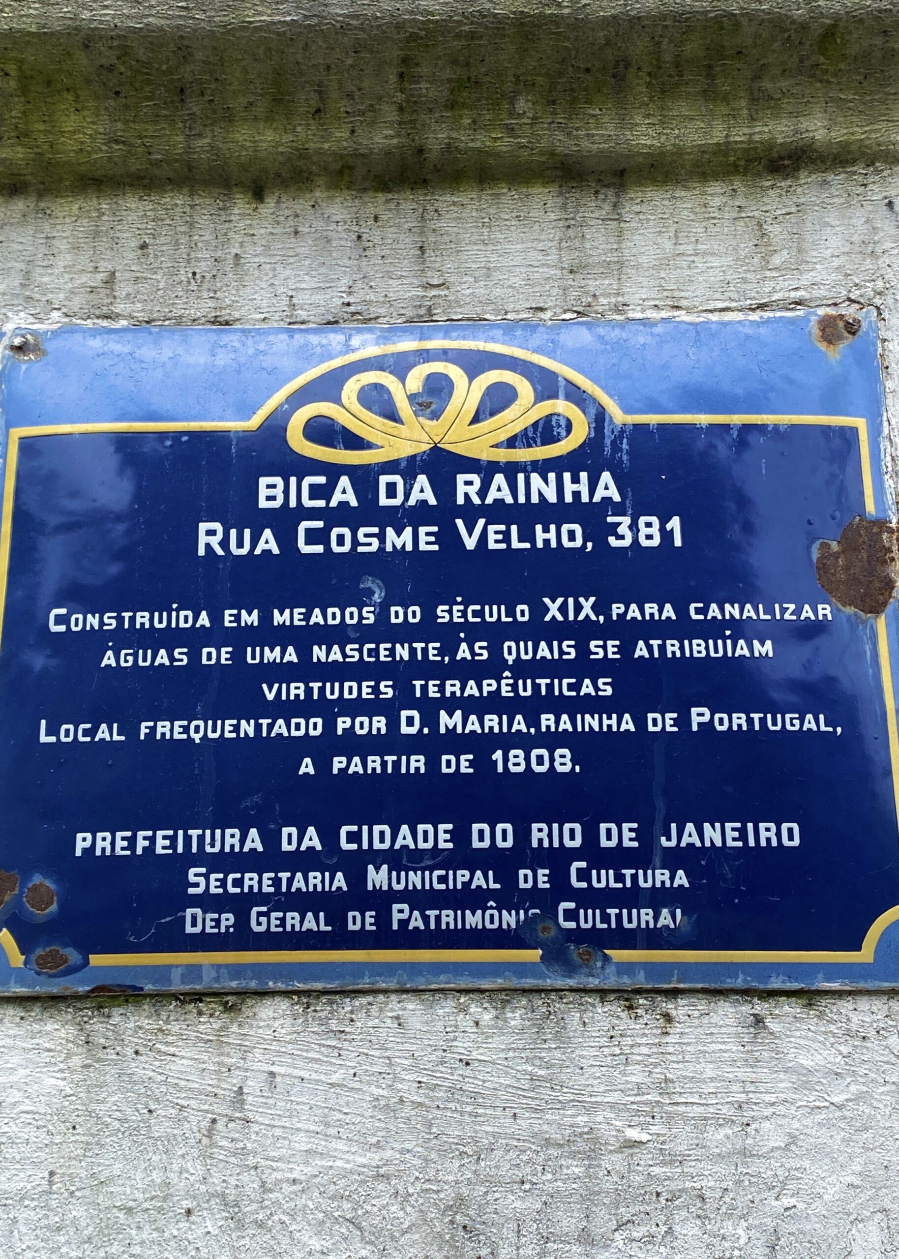 - Placa com informações sobre a Bica da Rainha no Cosme Velho RJ.