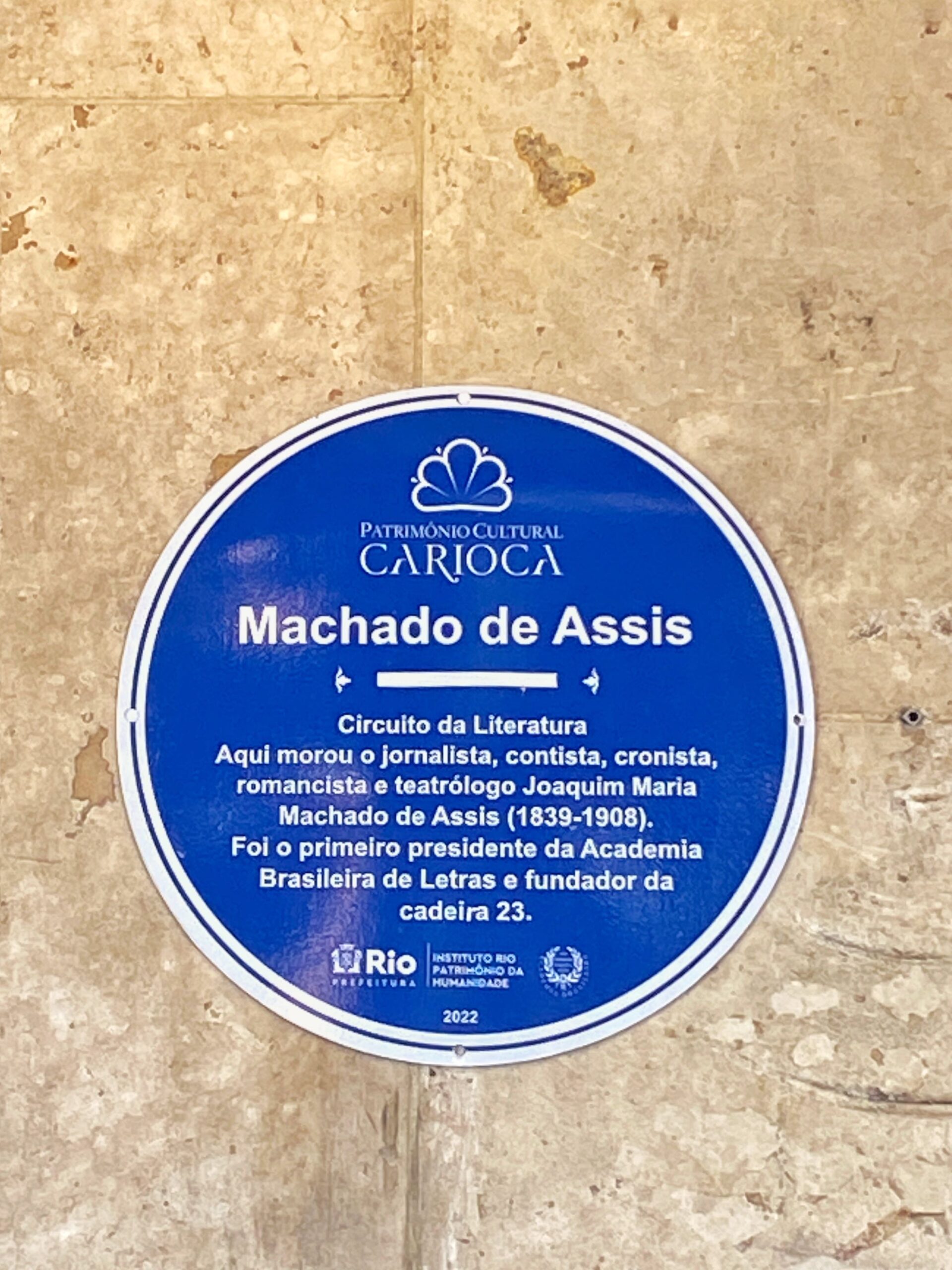 - Placa no local da casa de Machado de Assis.