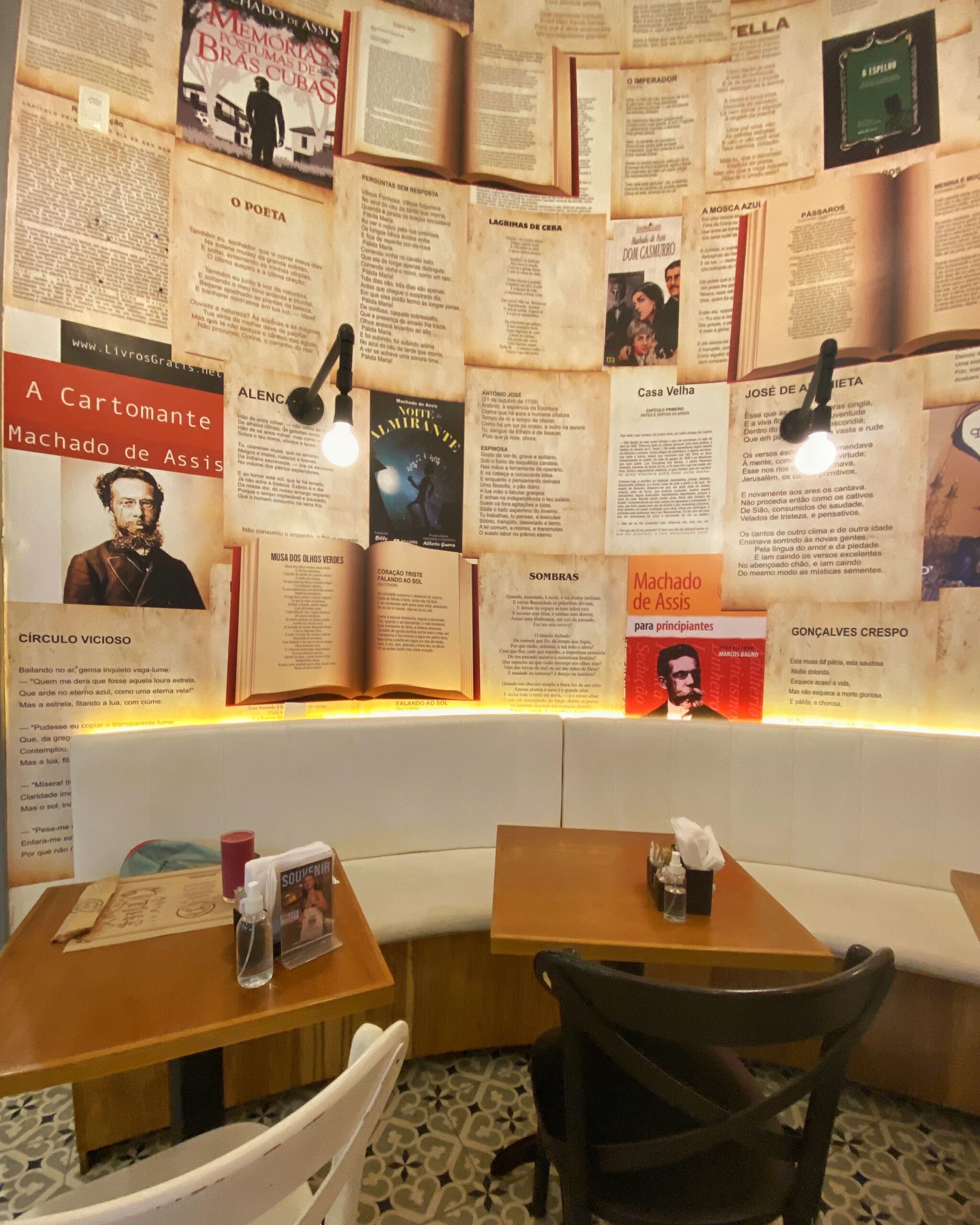 Bem, a casa onde Machado viveu foi demolida para a construção de um prédio e no térreo deste hoje há um restaurante todo dedicado ao escritor chamado Capitu Café. O lugar é uma gracinha, com as paredes cobertas de textos de Machado, mesinhas na sombra das árvores da calçada e boa comida. Vale conhecer.